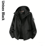 Zippers#5 Nylon reverse waterproof zipper in the central front, waterproof zippers on the side pockets, chest pocket and sleeve pocket.